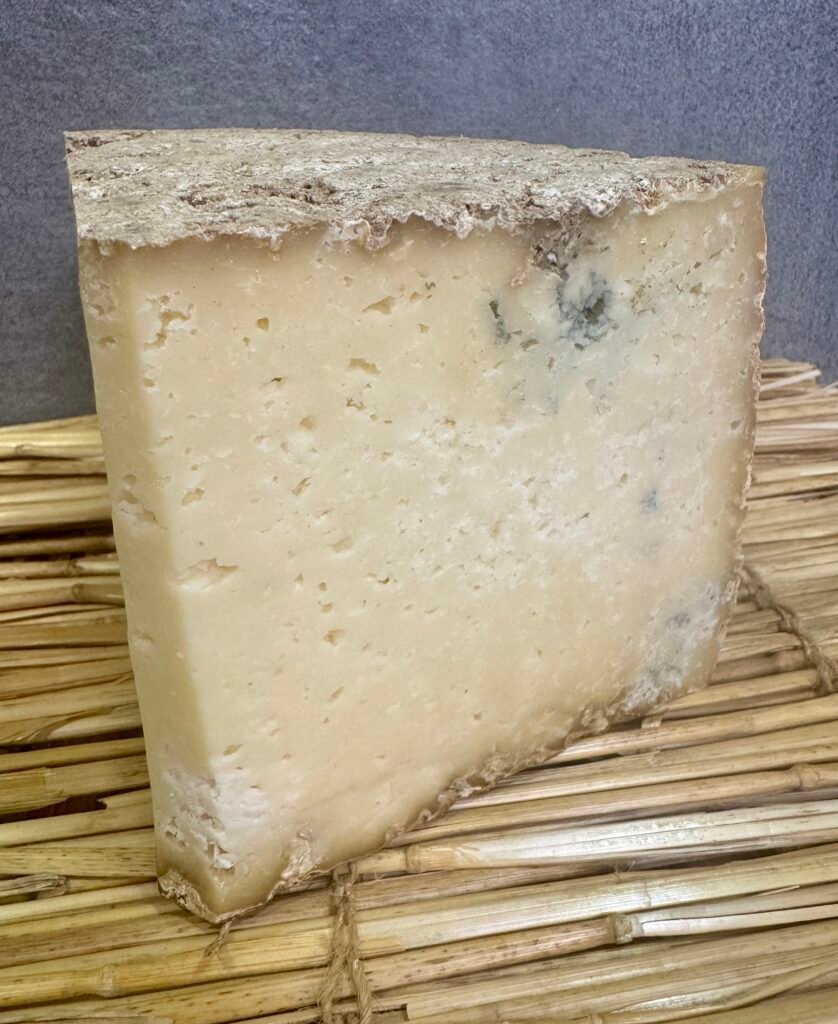 Queso azul de gran carácter, se elabora artesanalmente de las granjas de los Picos de Europa con leche cruda de vaca, cabra y oveja. (En este caso de producción ecológica). Corteza blanda, textura untuosa de color gris con zonas amarillas y sabor intenso pero equilibrado.